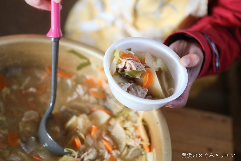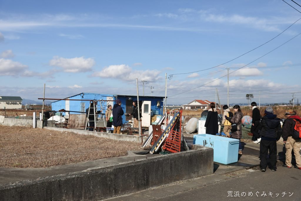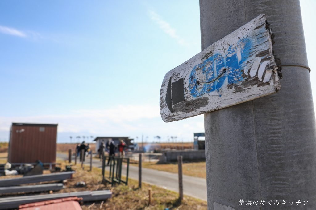 今回これから作っていく薪小屋は、ある廃材を材料として活用します。私達めぐみキッチンが活動の中で大切にしている「身の周りにある『使わなくなったもの』『廃棄するもの』は、知恵と技と手間をかければ『使える材料』になる」という考え方は、今回お話をうかがった荒浜の方々との関わりの中で学んできたことでもあります。