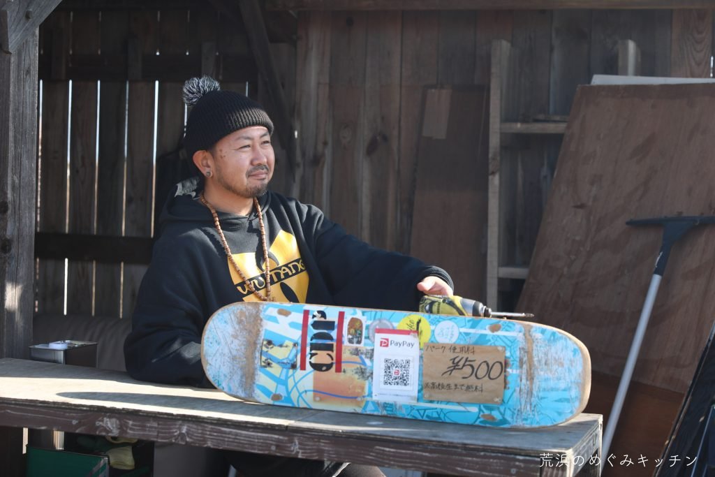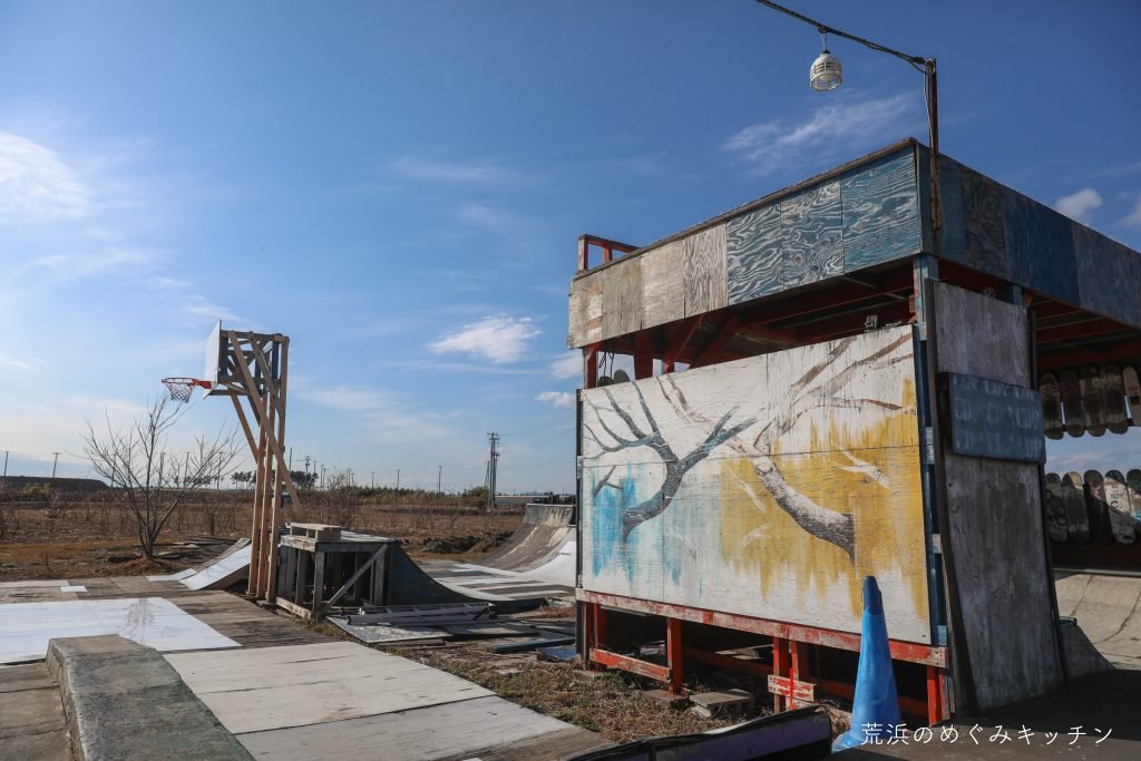 ここは元々この場所にお住まいだった貴田さんが、津波被災後に「他にやることないから(本人談)」と瓦礫を自力で片付け始め、いろんな廃材を集めて活用しながらスケートボードパークとして開設した場所。