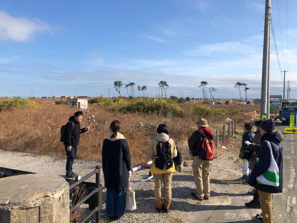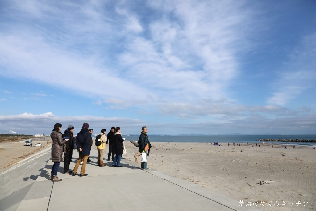 深沼海岸にも立ち寄りながら、深沼ビーチクリーンなど荒浜で行われている活動についてもお話ししました。