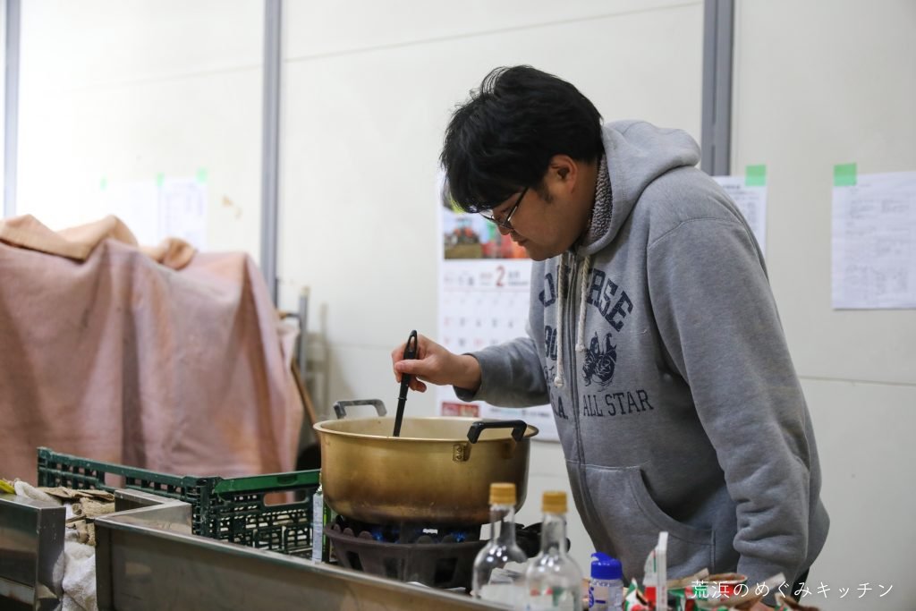 作業の横ではお昼のスープの調理も進んでいます。