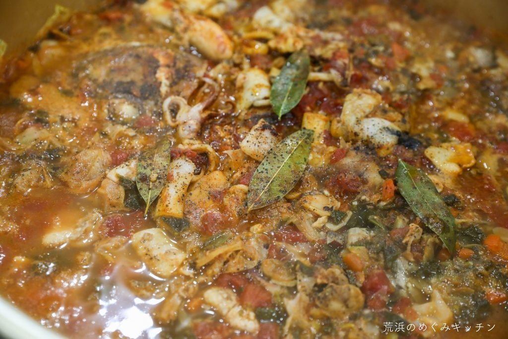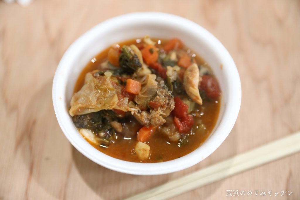 今日のスープはフランス料理のブイヤベース(Bouillabaisse)です。真鱈や鯛などの魚介、そして荒浜の野菜をふんだんに使っています。