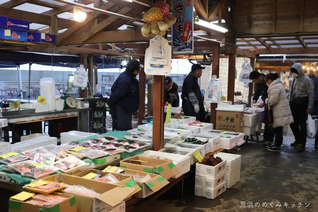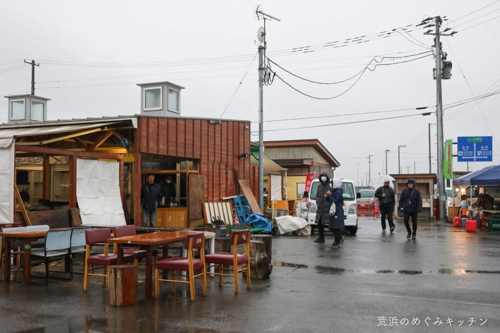 やってきたのは閖上(ゆりあげ)の朝市。朝6時のオープンですが、既に割と賑わっていました。