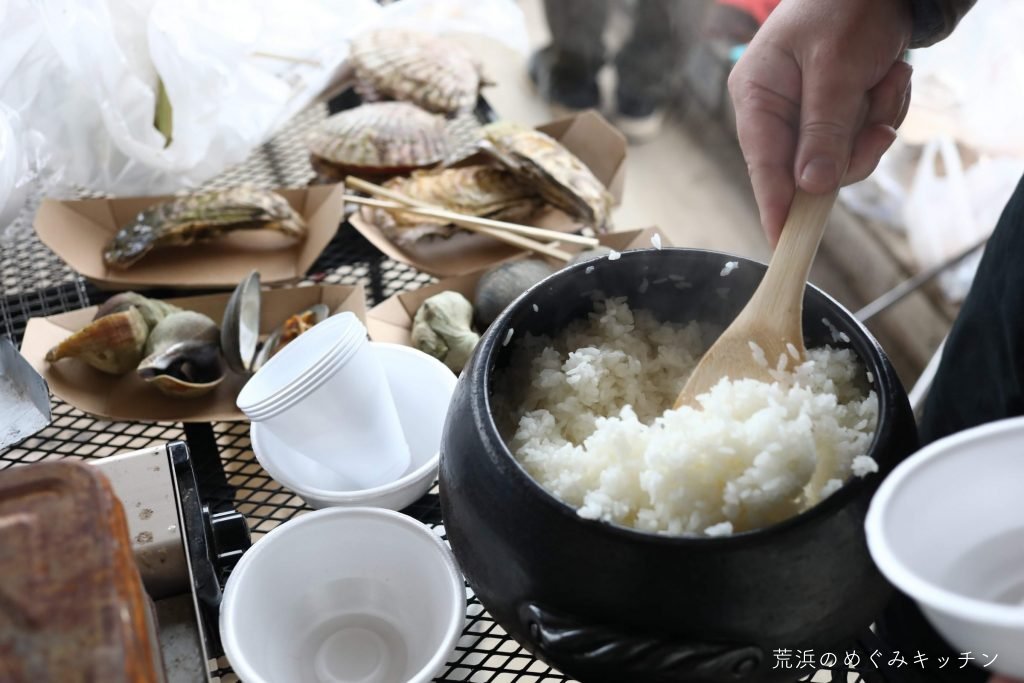 土鍋で炊いたご飯やカンカン焼きなどを味わいながら、馴染みの面々で語らいつつ、ゆったりした朝を過ごしました。