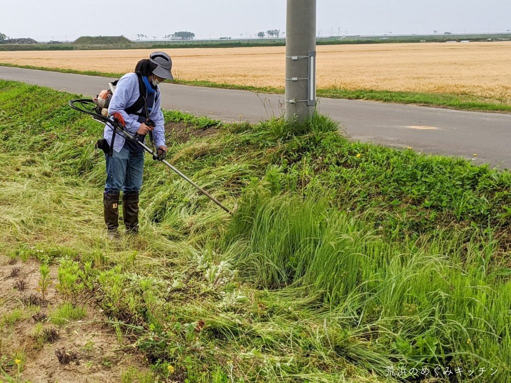 雑草は根っこがあるとまた生えるから、根こそぎ抜いてしまうのが一番…と思いきや、上だけ刈り取り根っこが残ってることで田んぼの畦(あぜ)が安定する、という面もあるそうで、なかなか奥深い。