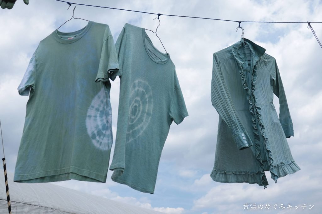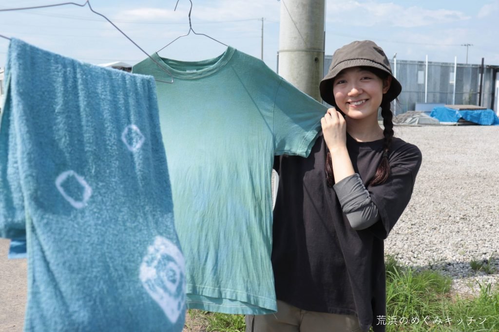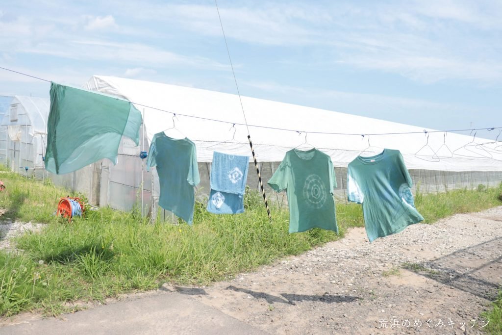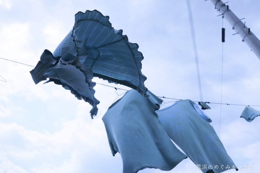 荒浜の風を受けて、少しずつ繊維が青みを増してきました。最終的に、この日の空のような青に染め上がりました。荒浜ブルー・プロジェクト、まだまだ勉強することがたくさんありますが、自然のめぐみを楽しみながら続けて行こうと思います。