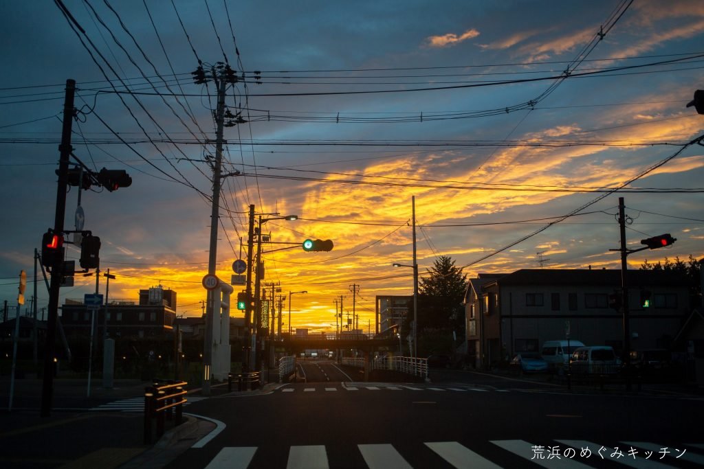 夏の暑さが収まり、だんだん夜明けの時間も遅くなっています。荒浜に向かう途中でとても綺麗な朝焼けが見られました。