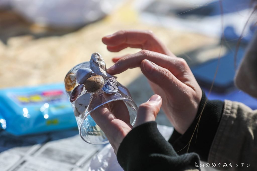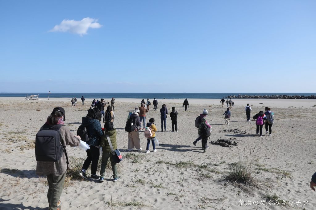仙台市唯一の海水浴場として賑わった深沼海岸。海辺の図書館の方が中心となり毎月行われているビーチクリーン活動の紹介させていただきながら、貝殻探しのビーチコーミングをしました。