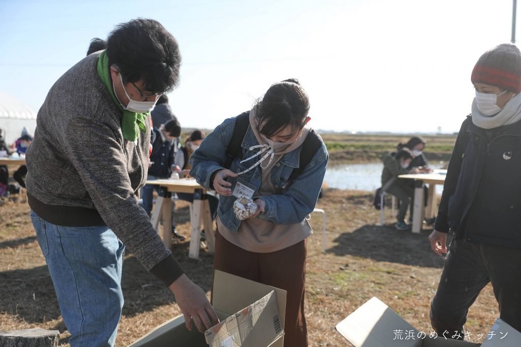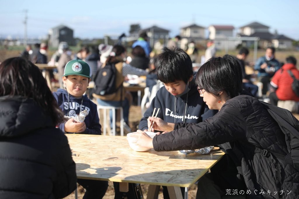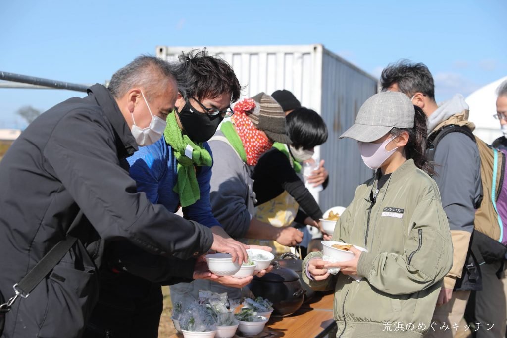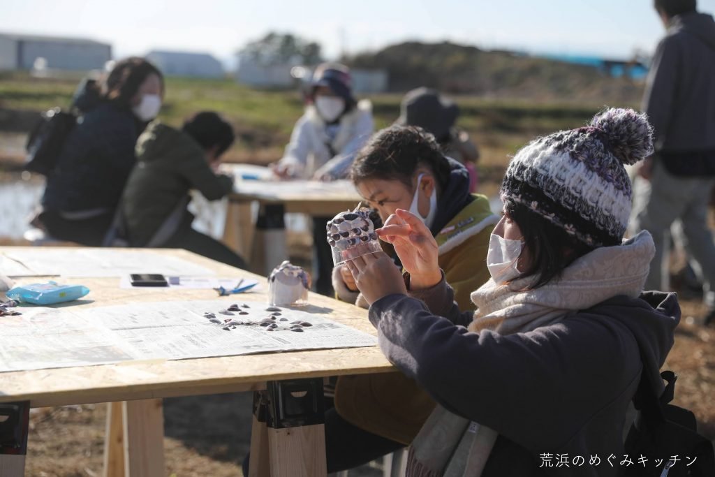 今回のイベントは、荒浜のめぐみキッチンとしては薪小屋づくりワークショップ以来、実に半年以上振りに一般の方をお招きする機会となりました。参加人数も約40名となり、「今できることプロジェクト」のサポートあっての実現でしたが、参加者に知っていただけたこと、様々な感想を聞けたことが、今後自分たちで作っていく体験プログラムの参考にもなりました。