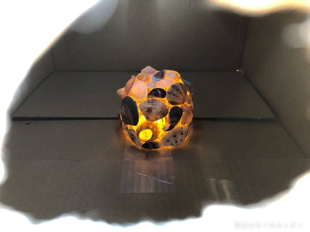 午後の時間では、深沼海岸で拾ってきた貝殻で小さなキャンドルホルダー作りをしました。