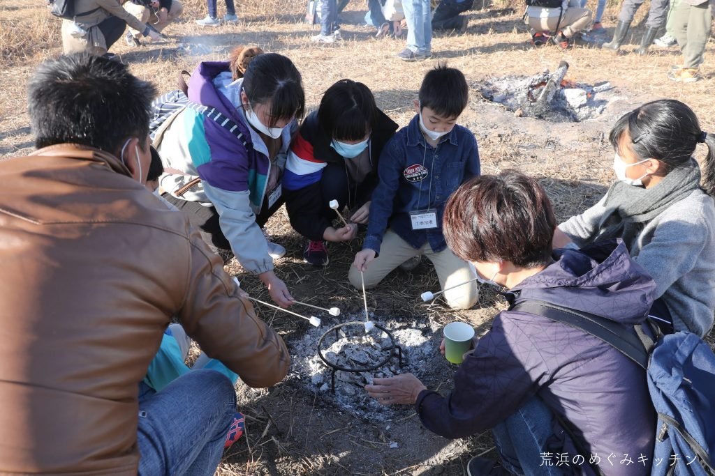 その後は焚き火で温まったり、マシュマロを焼いたり、脱穀の体験をしたりしながらゆったりした時間を過ごしました。