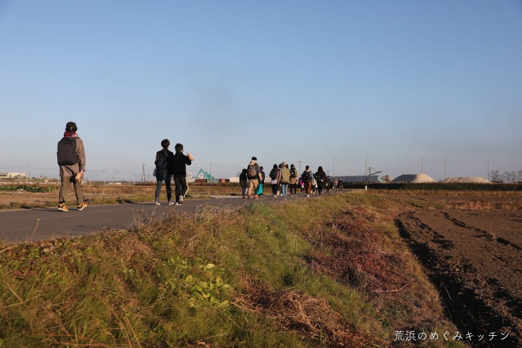 主要道から荒浜ベースまでは田んぼや畑の中を歩いて行ったんですが、「今まで気付かなかったけどこんなに広い農地があったんですね」なんて声も聞かれました。