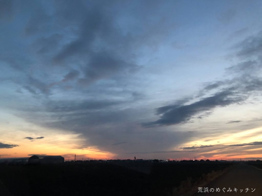 荒浜の朝焼け。都市部から田園部に向かって行くと、改めて広い空の美しさを感じます。