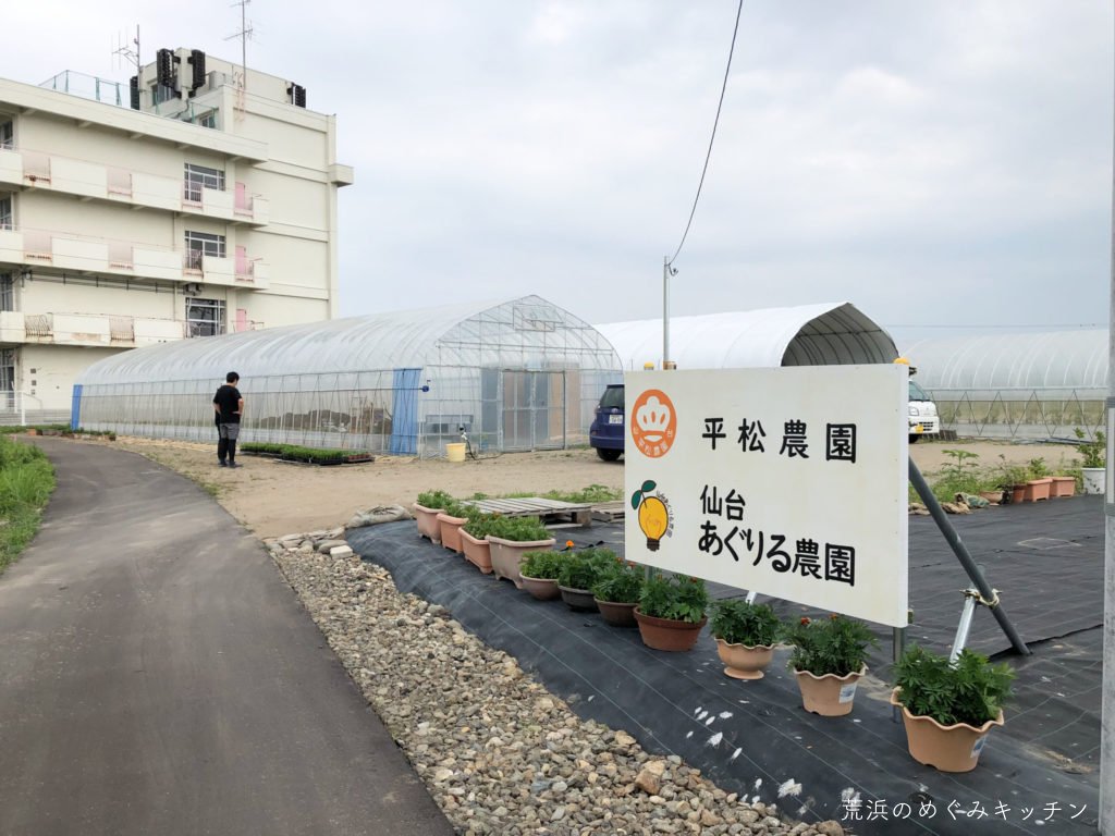 震災遺構 荒浜小学校のすぐ脇にある、集団移転跡地を利用した平松農園の小さな農場。平松さんはここで様々な野菜を育てる傍らで、「荒浜マリーゴールド」として、緑肥として土壌改良にも良いマリーゴールドを育て、荒浜を花で彩ろう、という活動を始めていらっしゃいます。