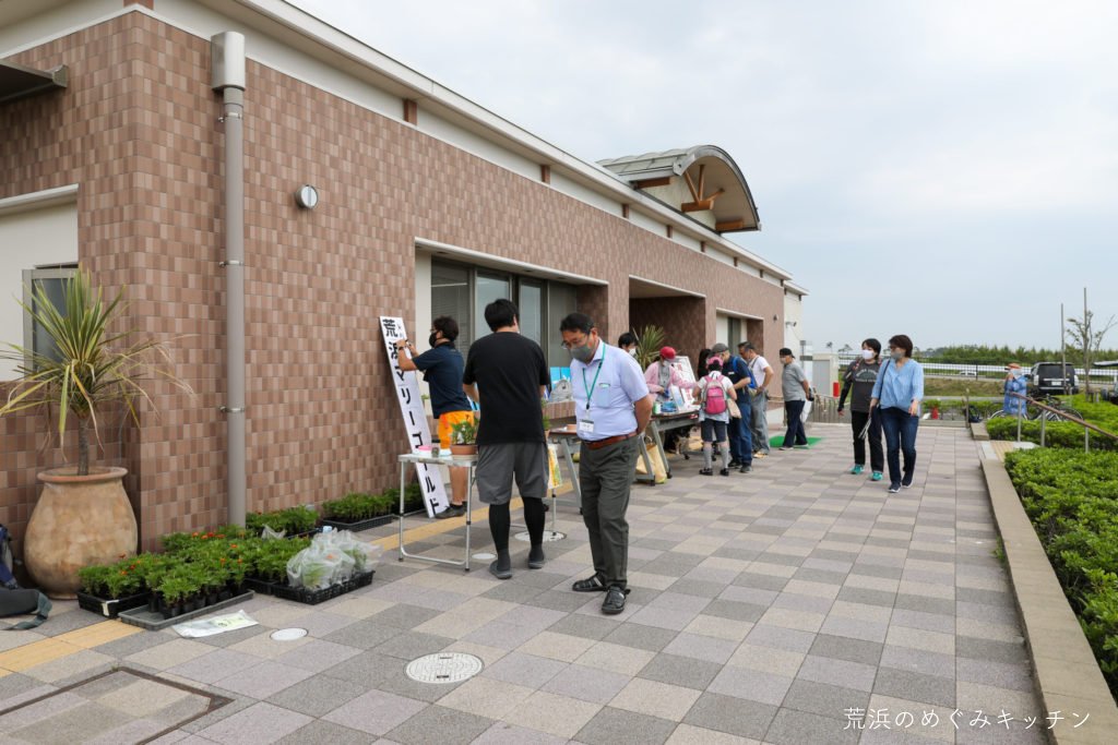 めぐみキッチンのスタッフでちょっとお手伝い。受付の脇で、参加者へのお土産として苗の配布をさせていただきました。