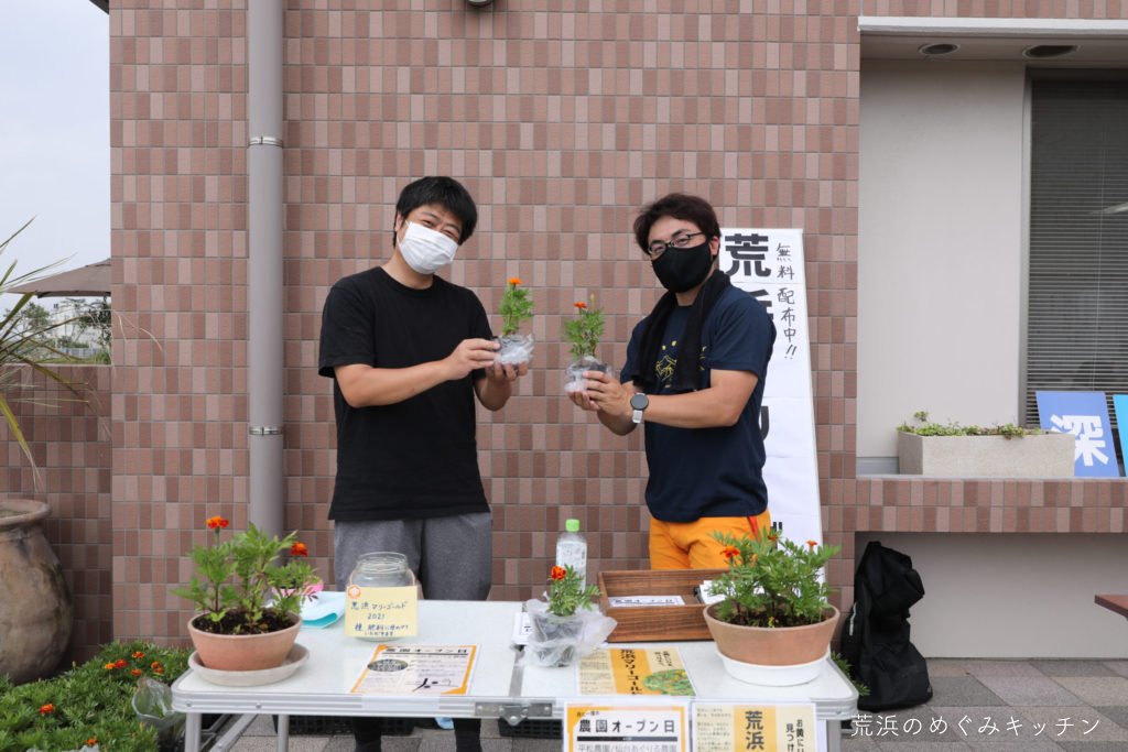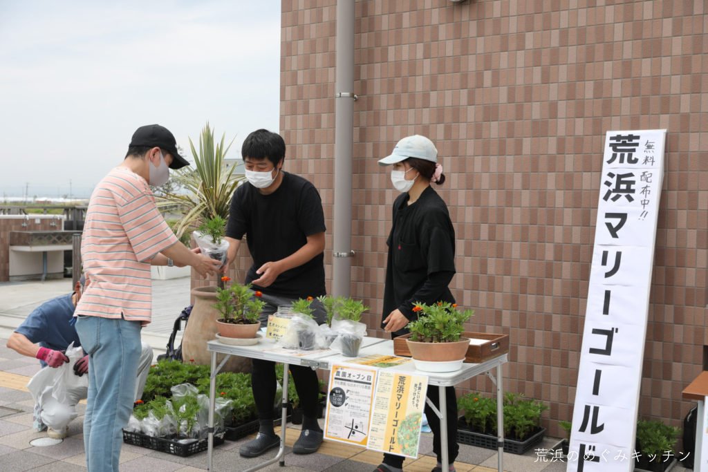 今回はそんなマリーゴールドを、地域の人や荒浜に関わる人にもお配りしよう、という機会でした。