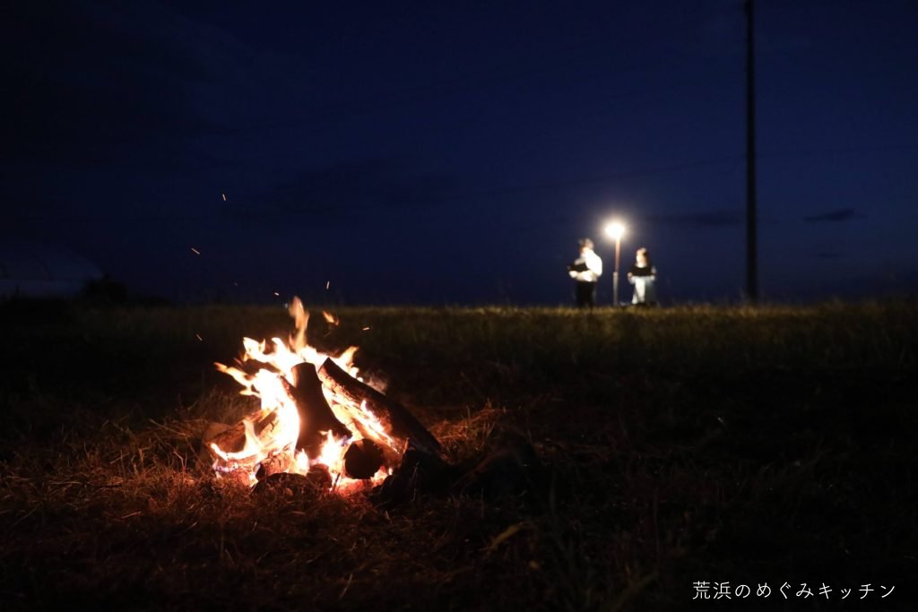 常連の方々にもお手伝いいただきながら撮影は進んでいき、焚き火とともに夜を迎えました。