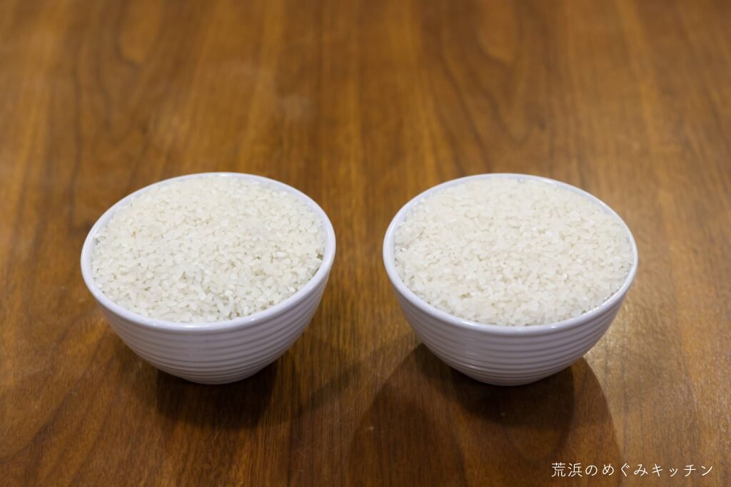 これも左が去年、右が今年。正直見た目に差はあんまりない。ちなみに去年のお米も籾(モミ)の状態で保存していたので、どちらも精米したてです。