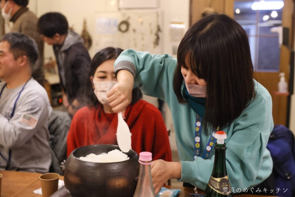試食会は身近な人での忘年会を兼ねつつ、綴カフェで行いました。お米を炊きながら、用意していただいたお惣菜を頂いてましたが、いつも通りとても美味しい。