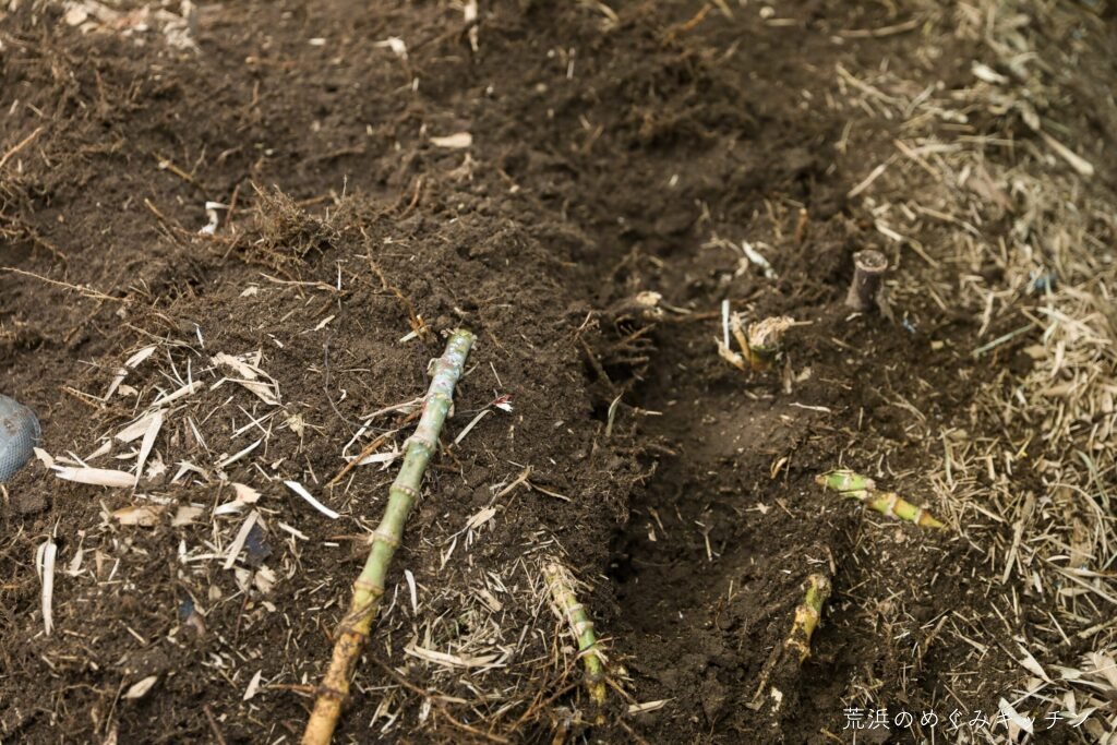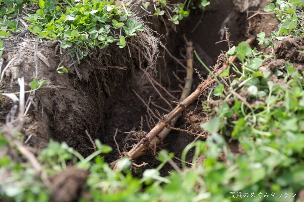 埋めた根っこからどれくらちゃんと生えるのか… 実験的ではありますが、これからの生育を楽しみに待つことにします。
