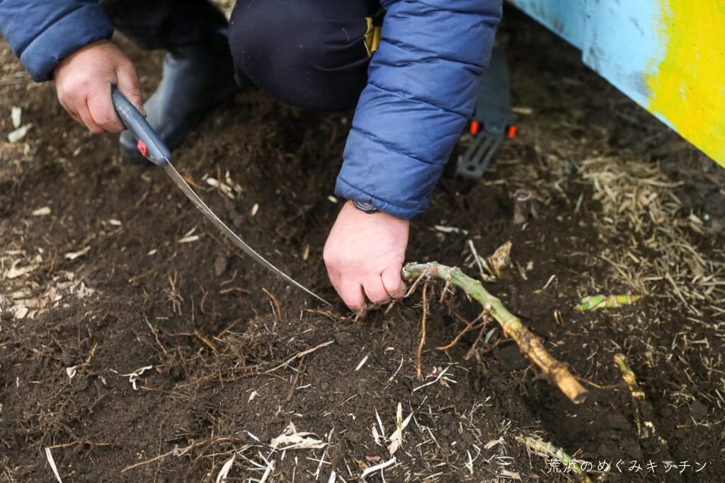 …ですが、なにせしっかりと根を張っているので掘り出すとなると結構大変。ある一本に狙いを定めつつ、周囲の土を掘り起こしていきます。