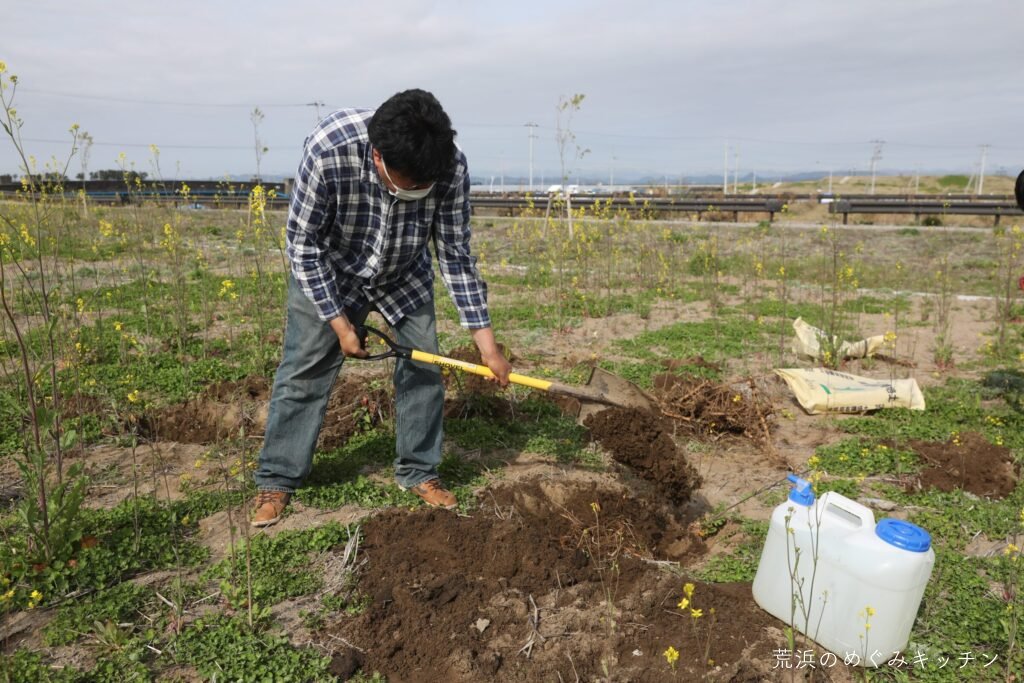 深沼ベースの整備計画をもとに、植える位置を再確認しながら、いよいよ穴を掘って根っこを埋めていきます。