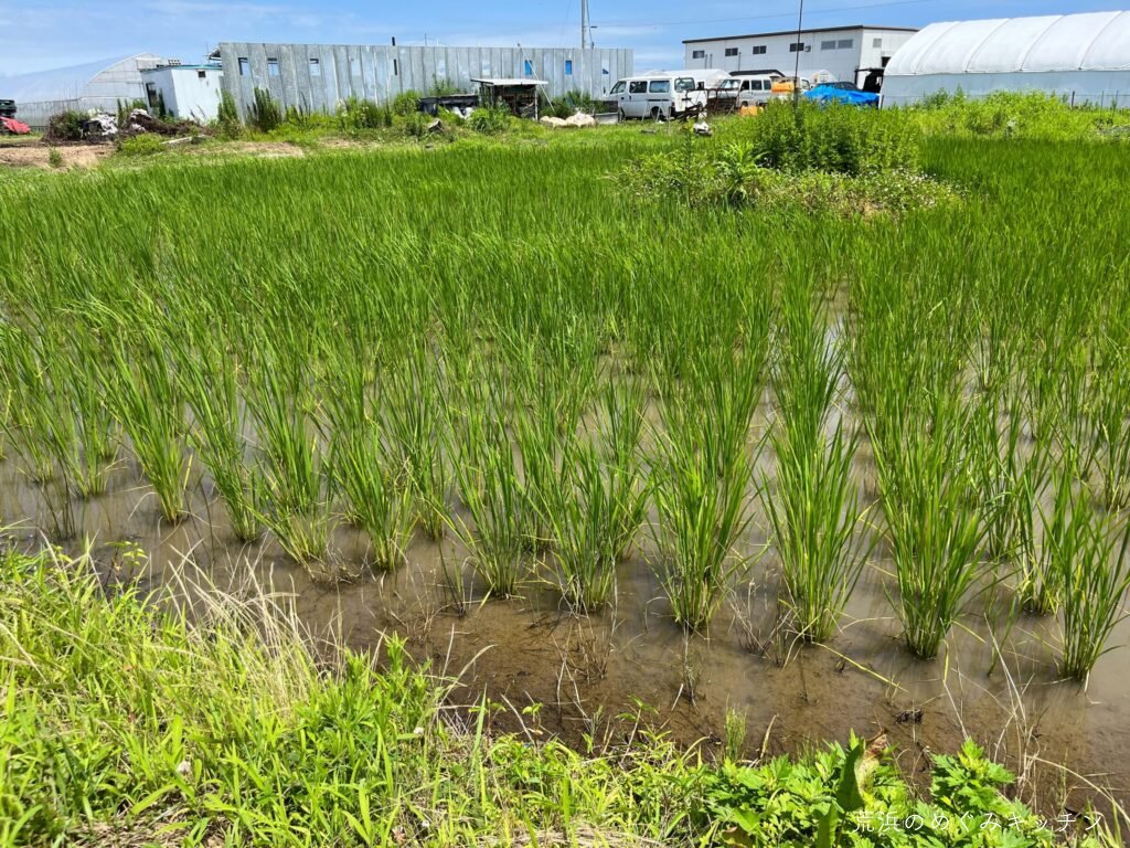 先週に続いて見事な晴れ。丸い田んぼの稲もだいぶ育ってきています。