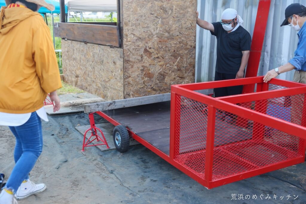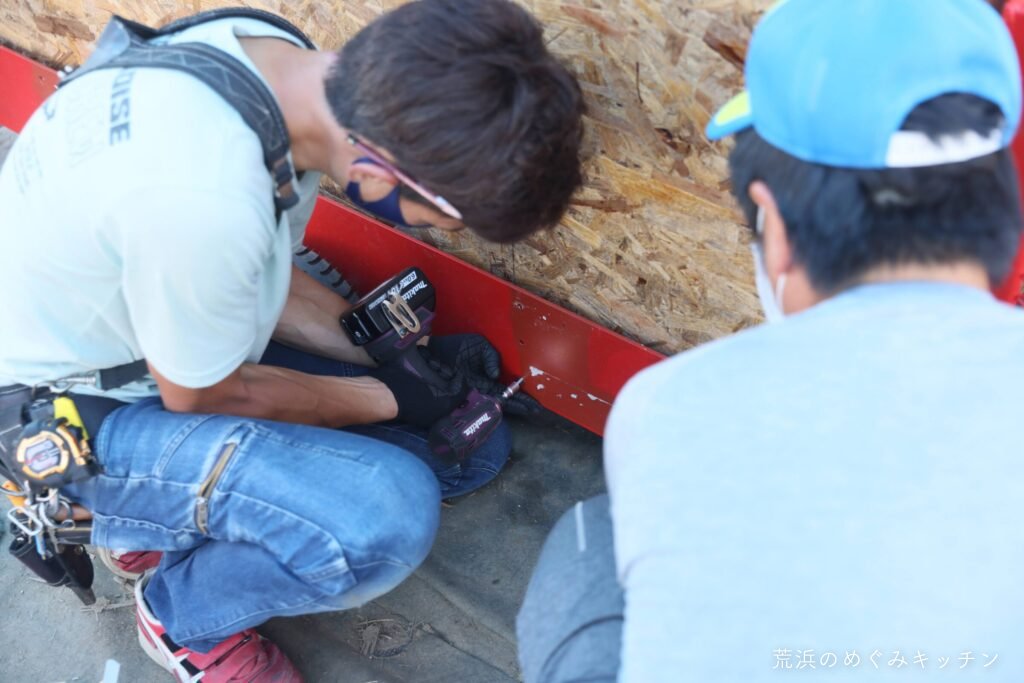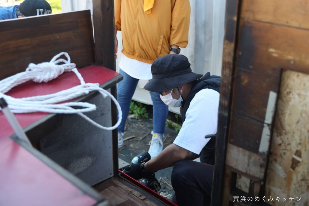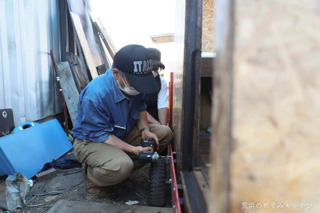 屋台を直して活用するDIYワークショップ、第3回を開催しました。今回も荒浜ベースでの作業。