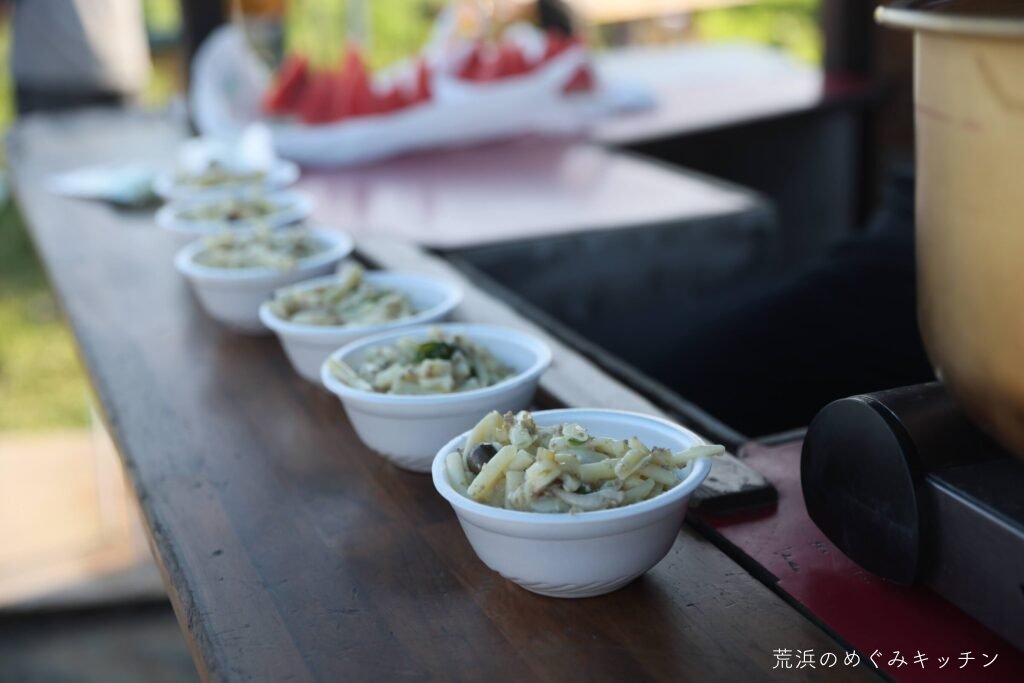さっそく軽食を取りながら、完成した屋台を囲んで談笑のひとときを過ごしました。