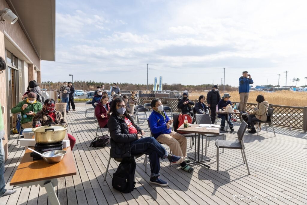 庄子さんと渡邉(めぐみキッチン共同代表)は荒浜に住んでいた人なので、震災前の実際の様子についても話が広がる… 荒浜の豆腐屋さんや、各家庭で作られていた味噌など、記憶が紡がれていっていました。