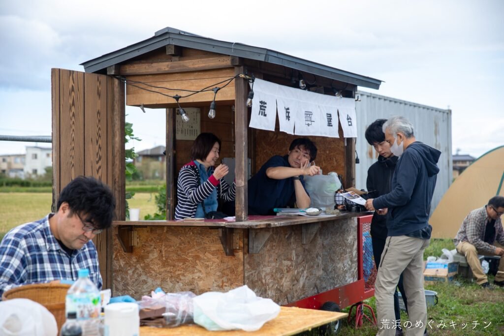 受付には屋台も活躍。「荒浜屋台」の暖簾も付きました!