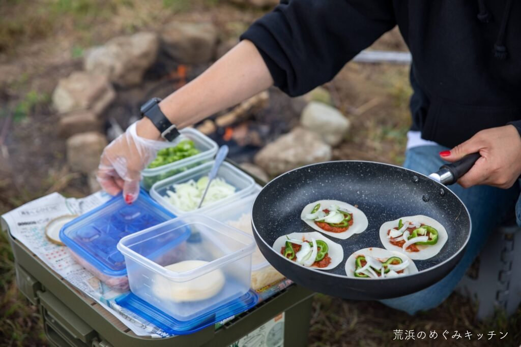 手のひらサイズのピザ、手作りジャム、更にはこのためにわざわざ釣ってきてくれた天然イワナなど、普段から朝活に加わっているメンバーによる焚き火料理が振る舞われます。ご来場いただいた方々も、焚き火を楽しみながらゆったり過ごしていました。