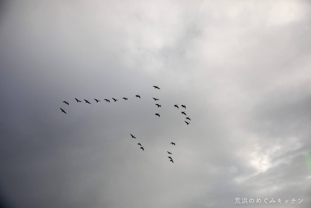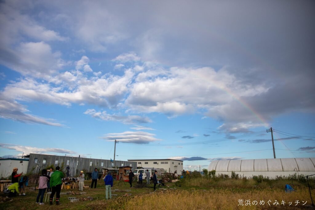 夕方になり朗読会の時間に近づいた頃、空には雁の群れが渡っていきました。そして短い通り雨の後には虹の姿も。