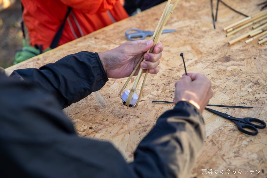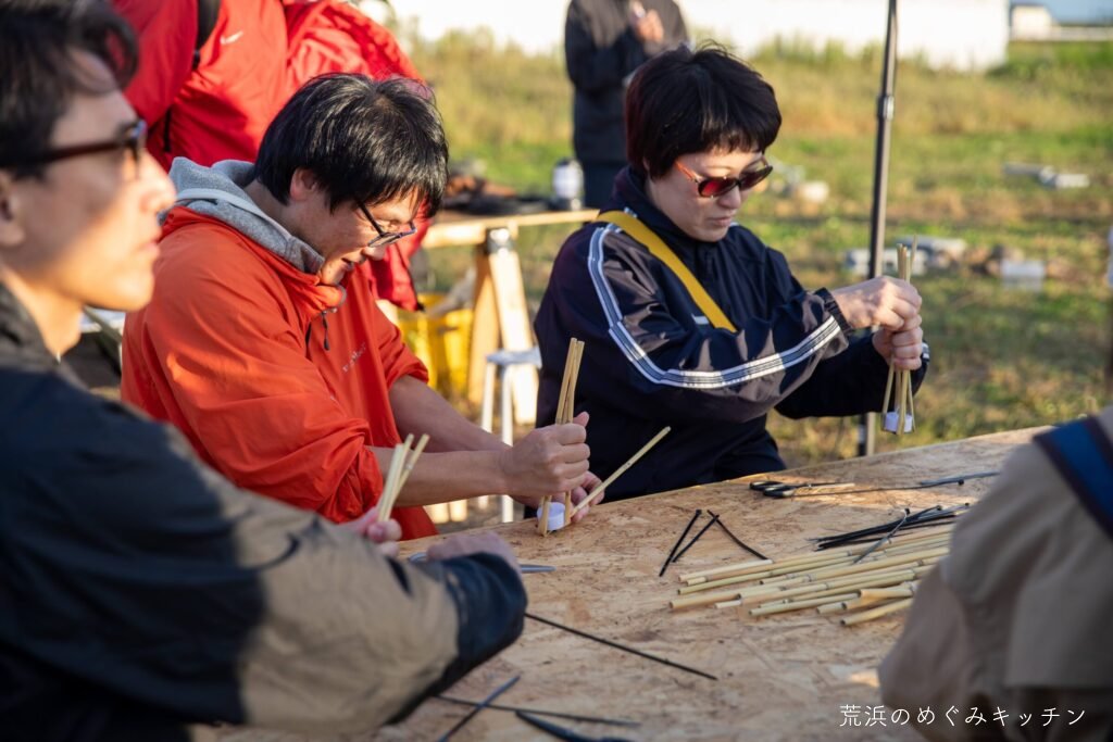 第2部の朗読会は、今年は小さな工作ワークショップから始まりました。荒浜で採った葦を使い、一人ひとつの小さなキャンドルを作ります。