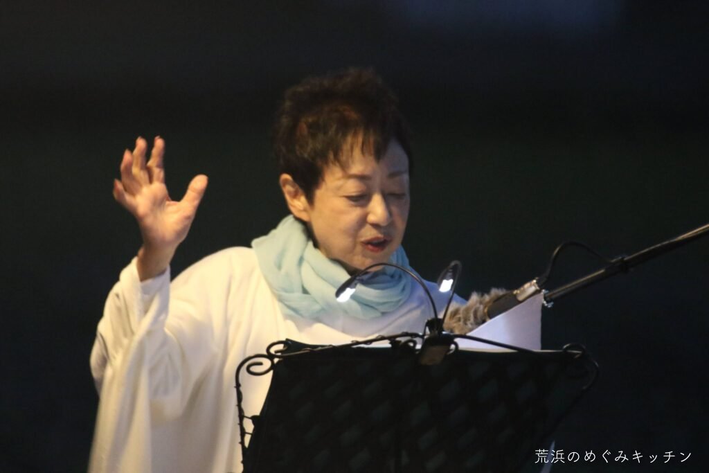 開演。最初の作品は、今回も「耕母黄昏」。私たちの朗読会の位置付けには、宮沢賢治の唱える「農民芸術」と通じるものがあります。その象徴的な作品として、これまでも毎回この耕母黄昏を読んでいました。