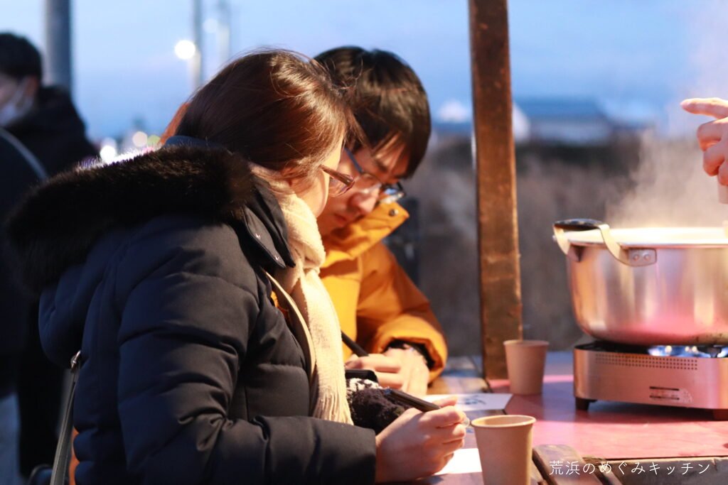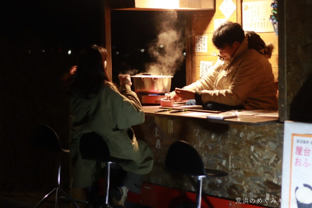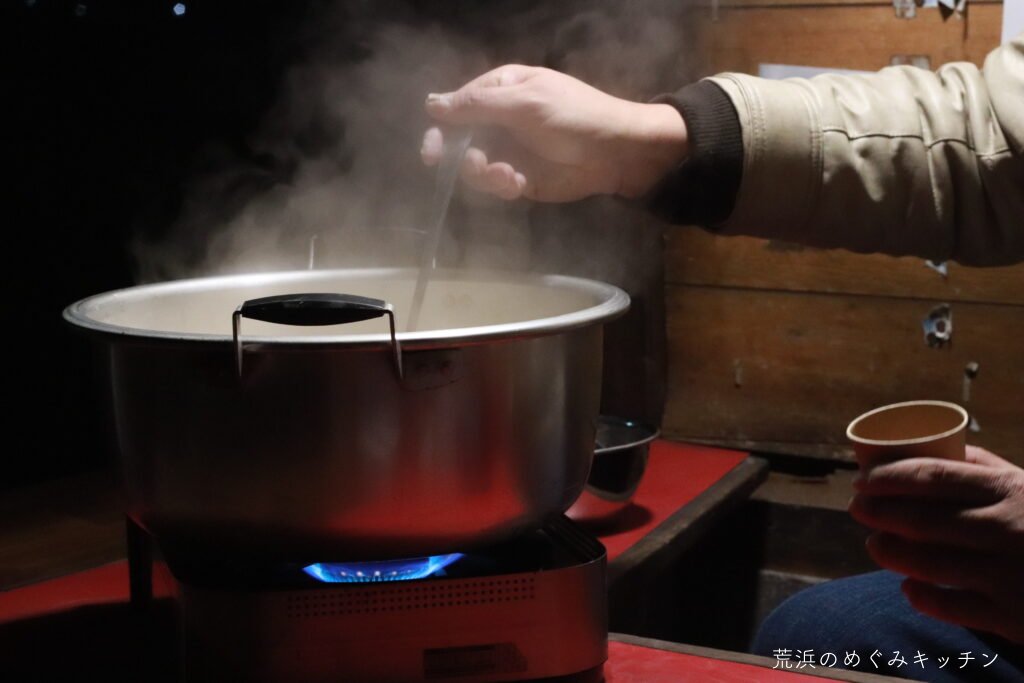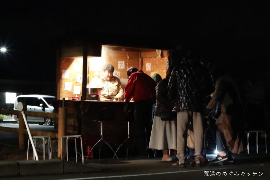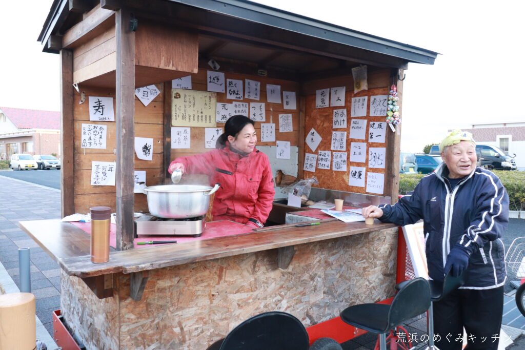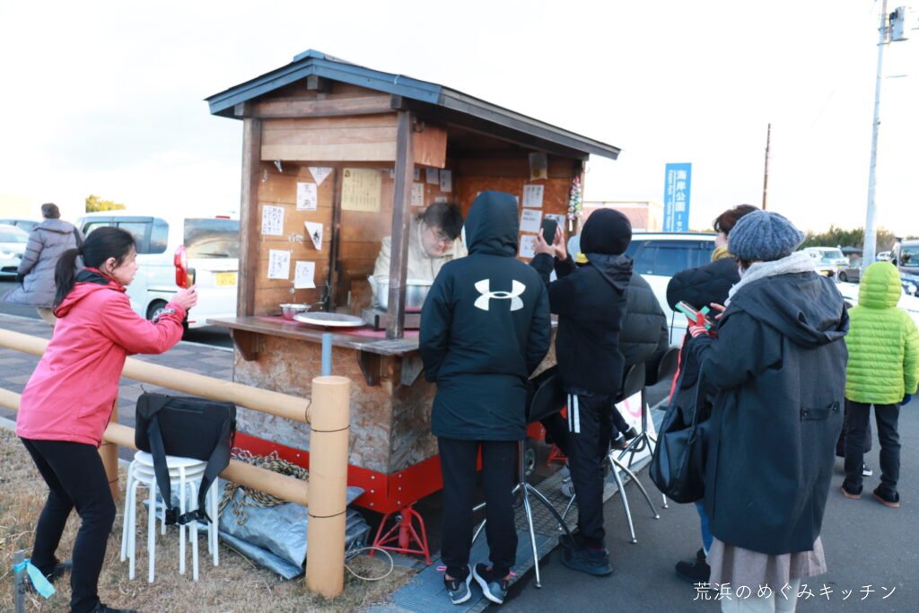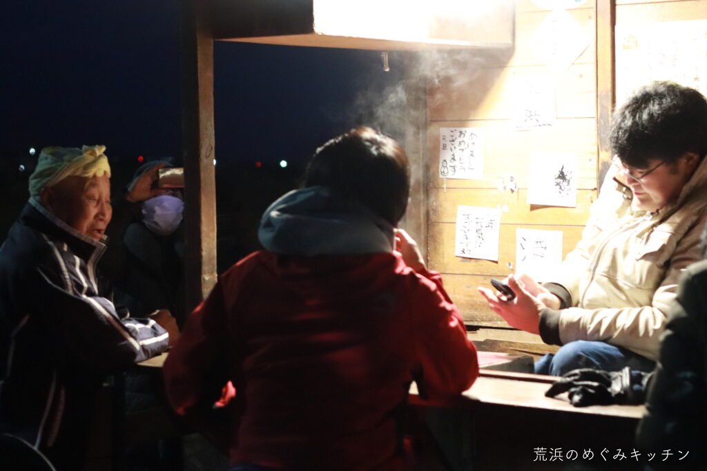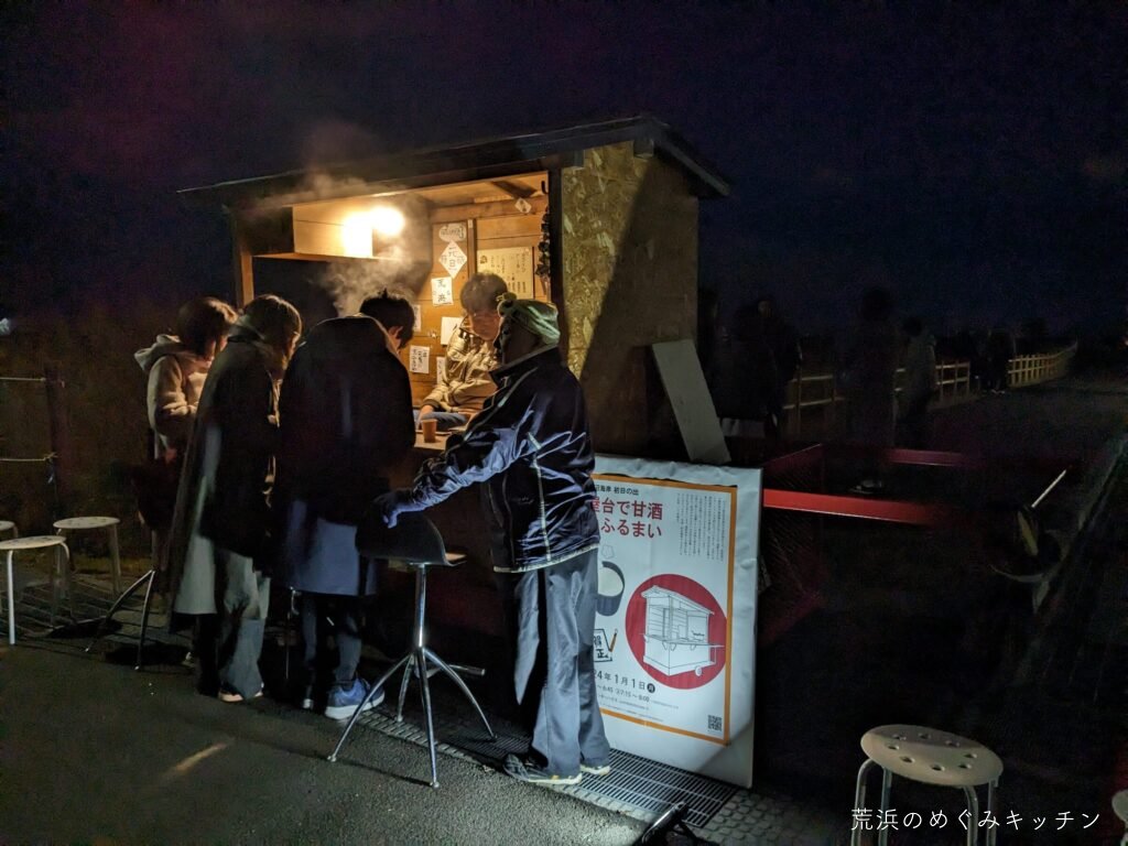 深沼海岸での初日の出に合わせ、屋台を海岸公園センターハウスに運び、甘酒のおふるまいをしました。