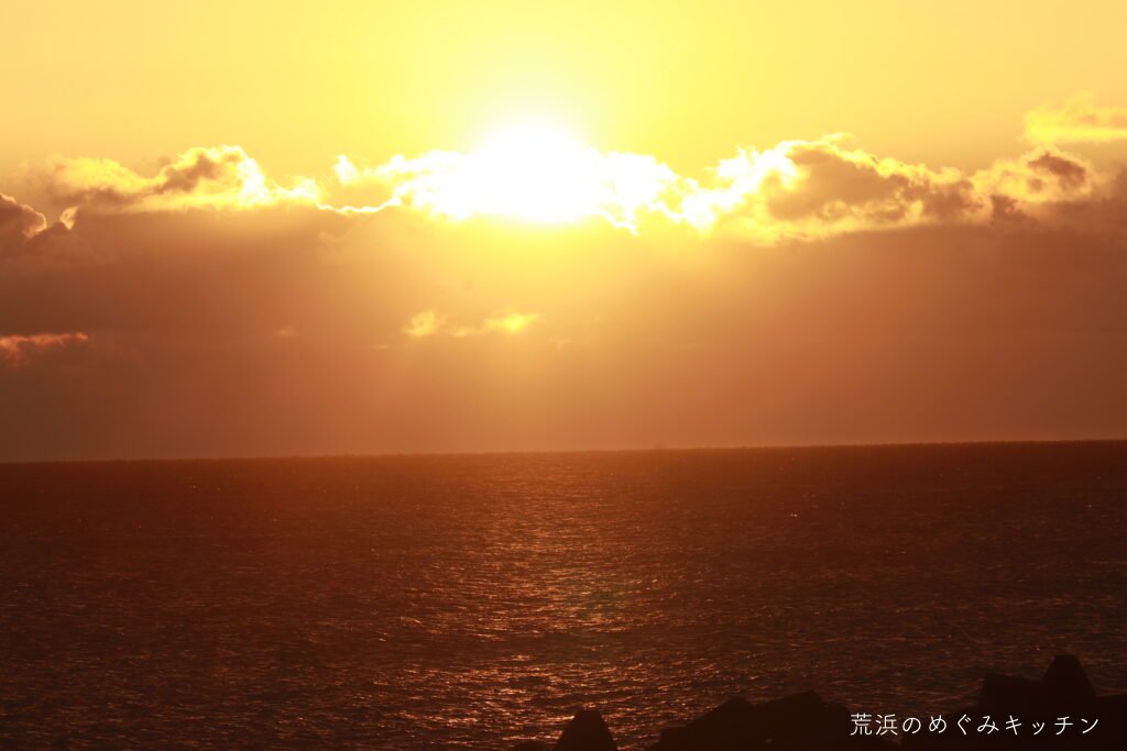 雲から上がる初日の出。