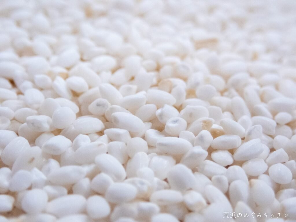 収穫できた餅米は、全部で三升!石臼から溢れんばかりのボリュームです。