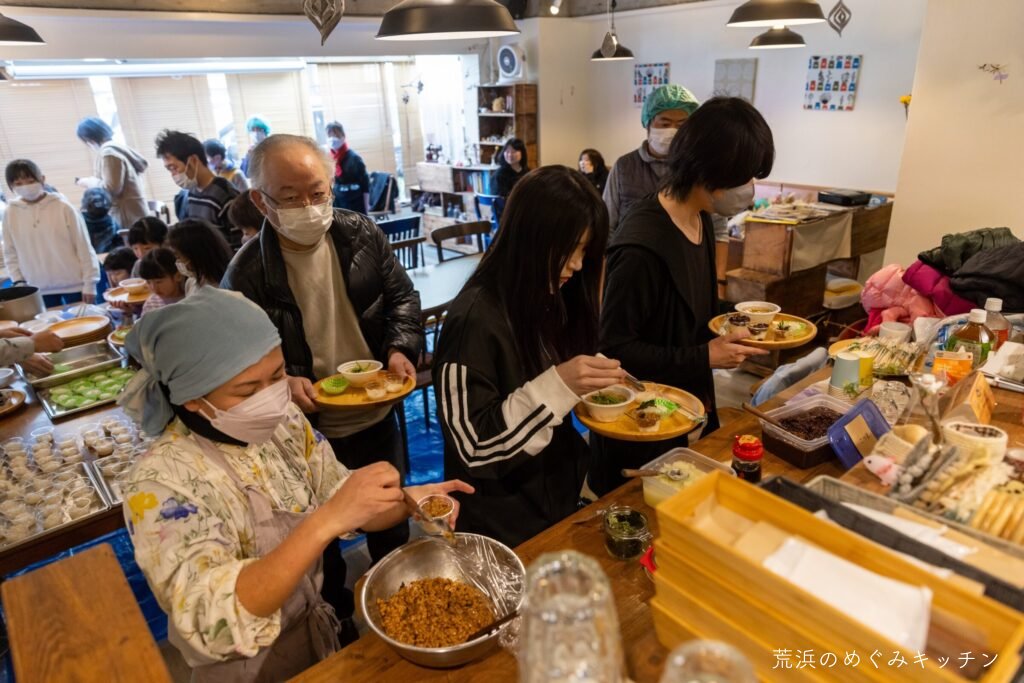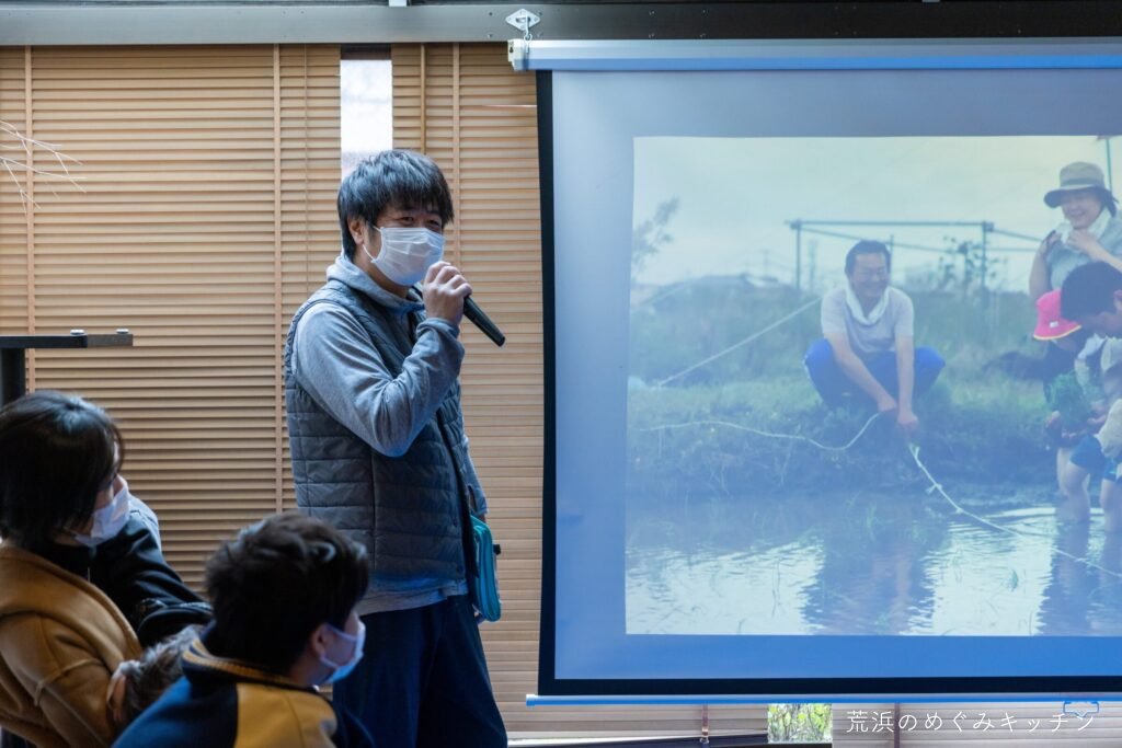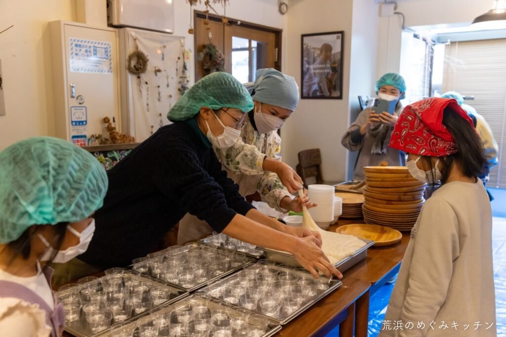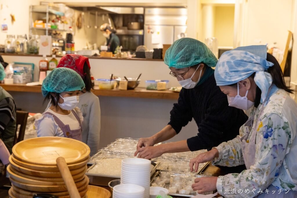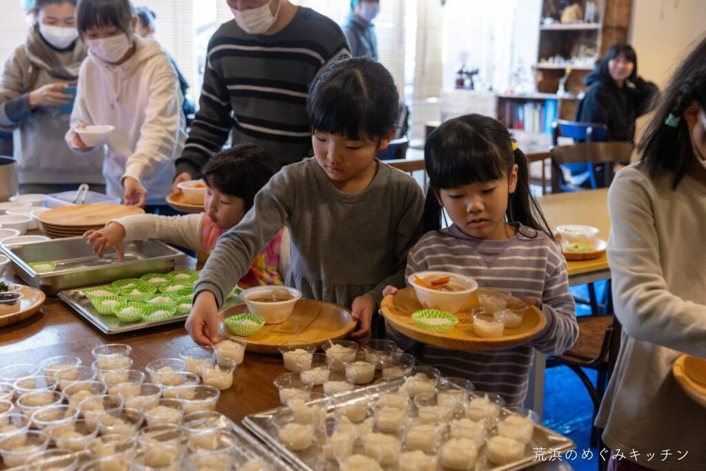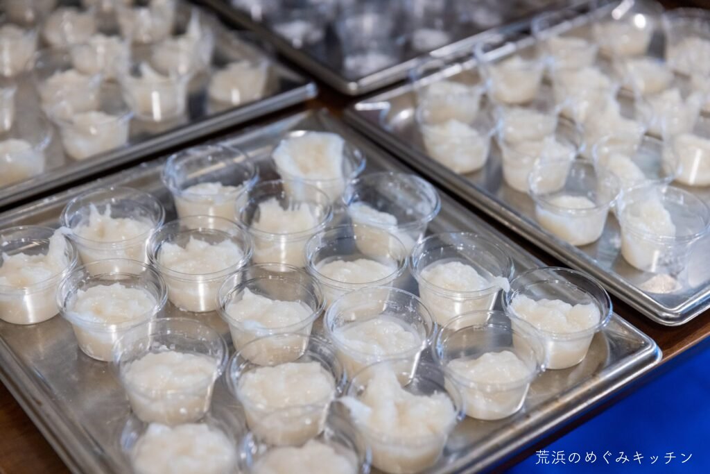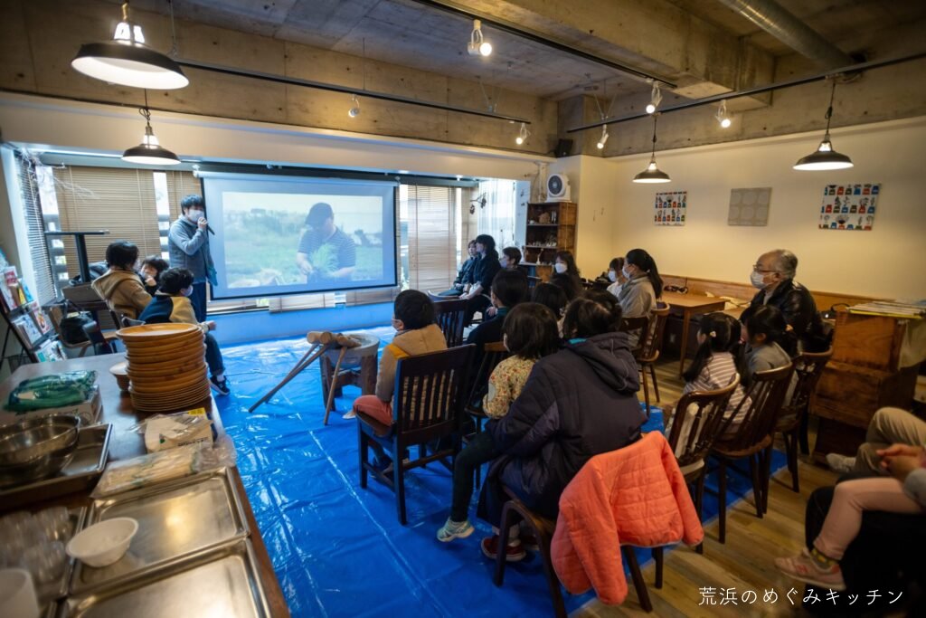五橋ベース(綴カフェ)を会場に、荒浜の丸い田んぼで育った餅米でもちつき体験を行いました。