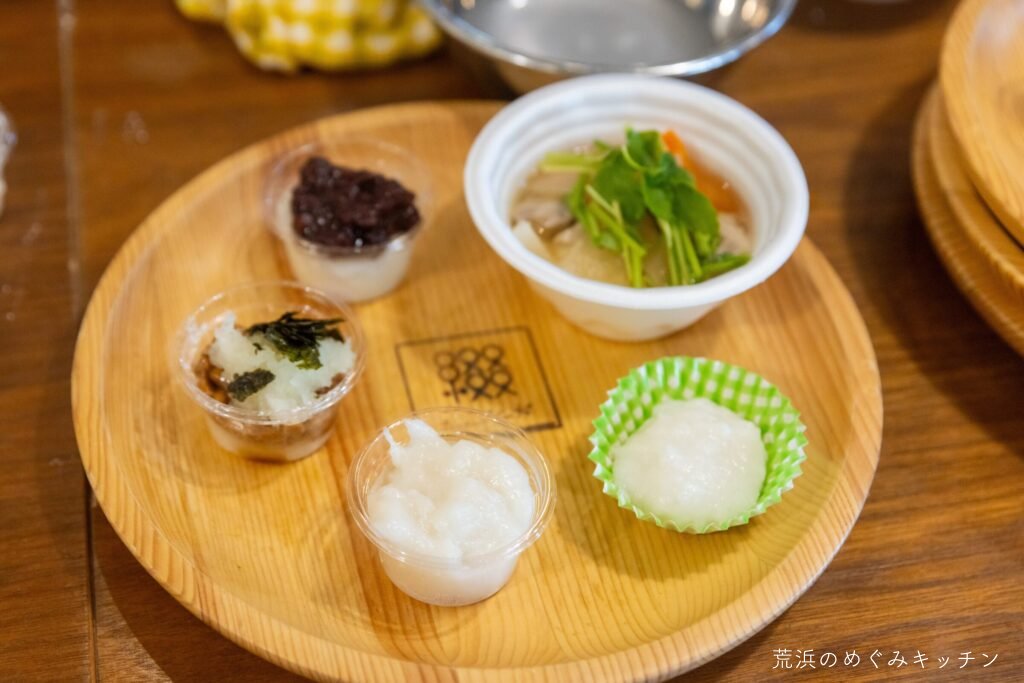 餅を取り分けて、食べ比べのために素のまま、あんこもち、納豆もち、そしてお雑煮でいただきました。