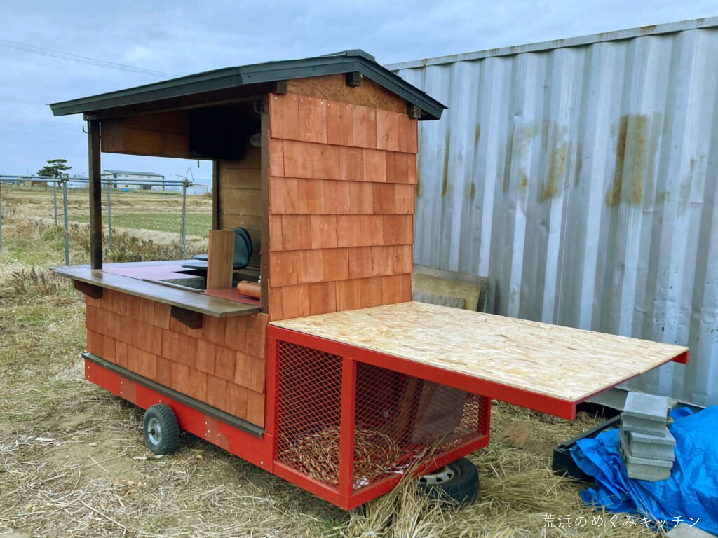 手すりの上に簡易的な仮設テーブルも追加され、屋台はこんな姿になりました。