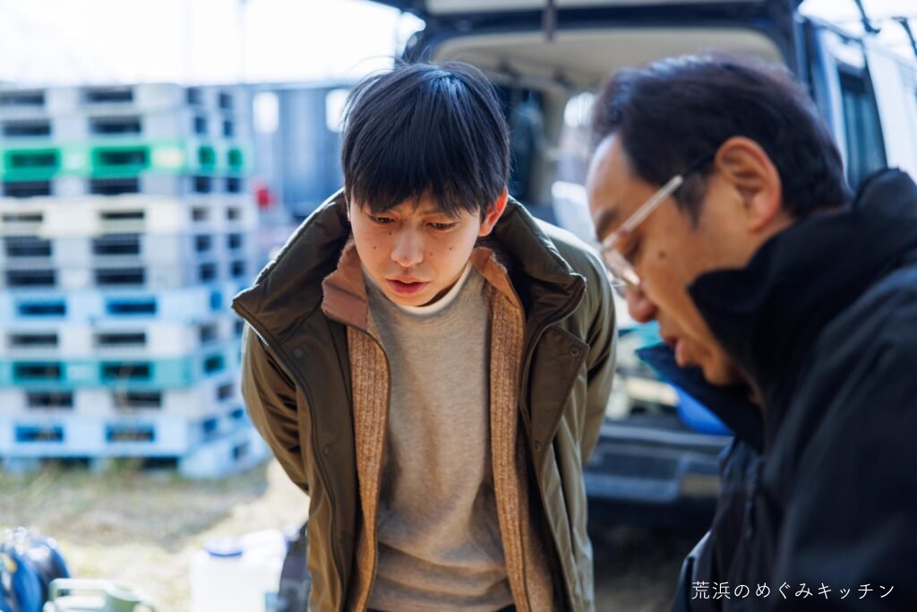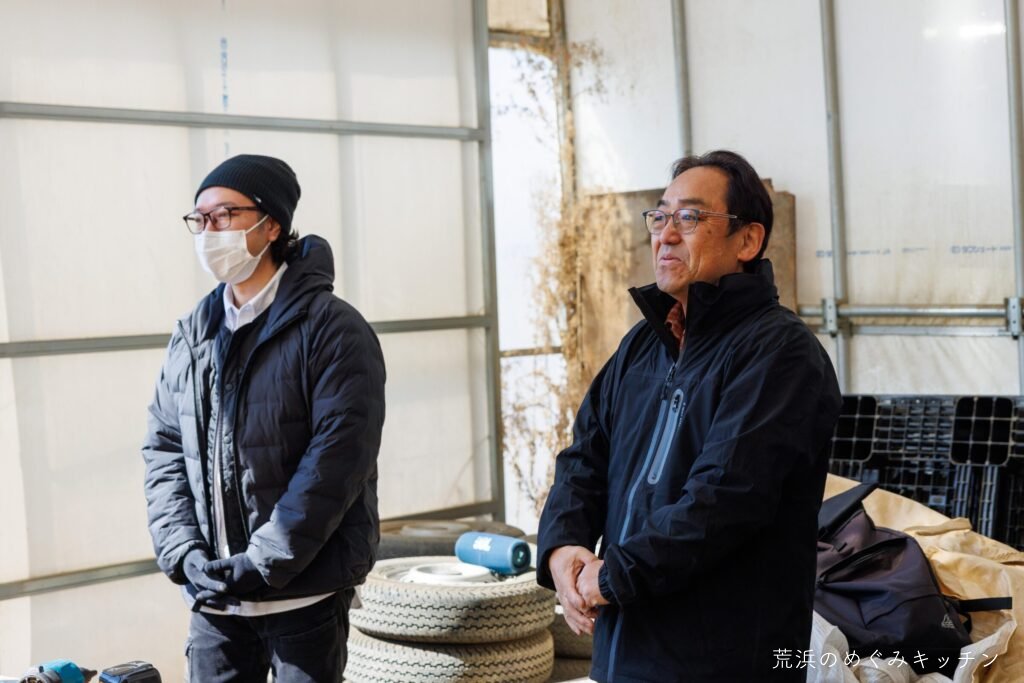 今回も、荒浜で創業した看板・ディスプレイ製作会社、毎度おなじみスリーエイトのお二人にご協力いただきました。