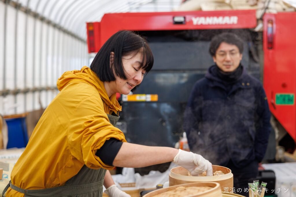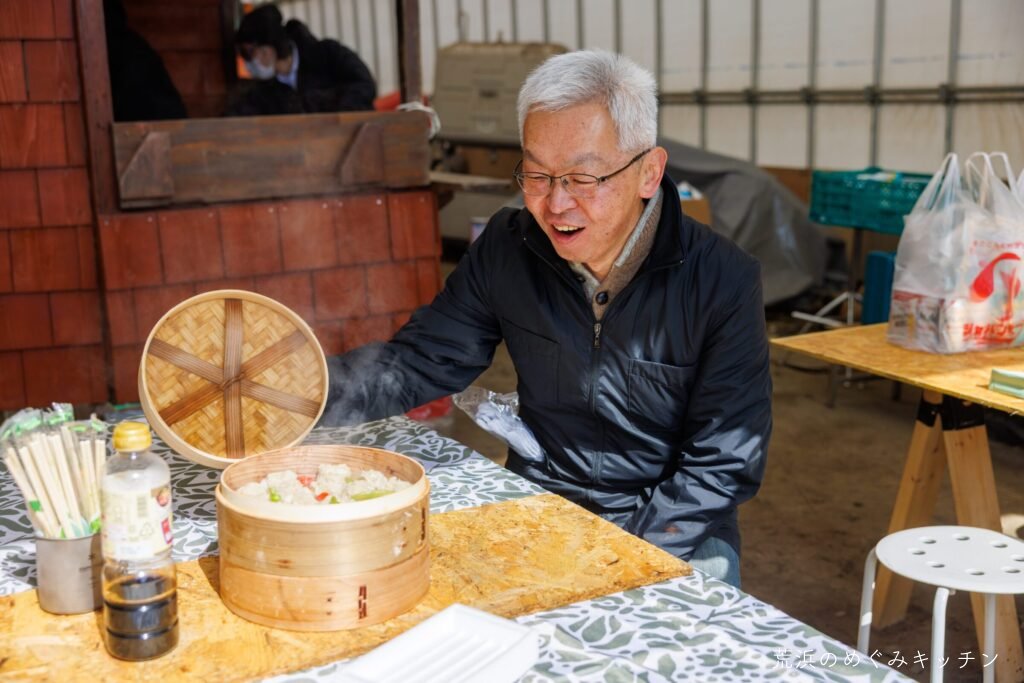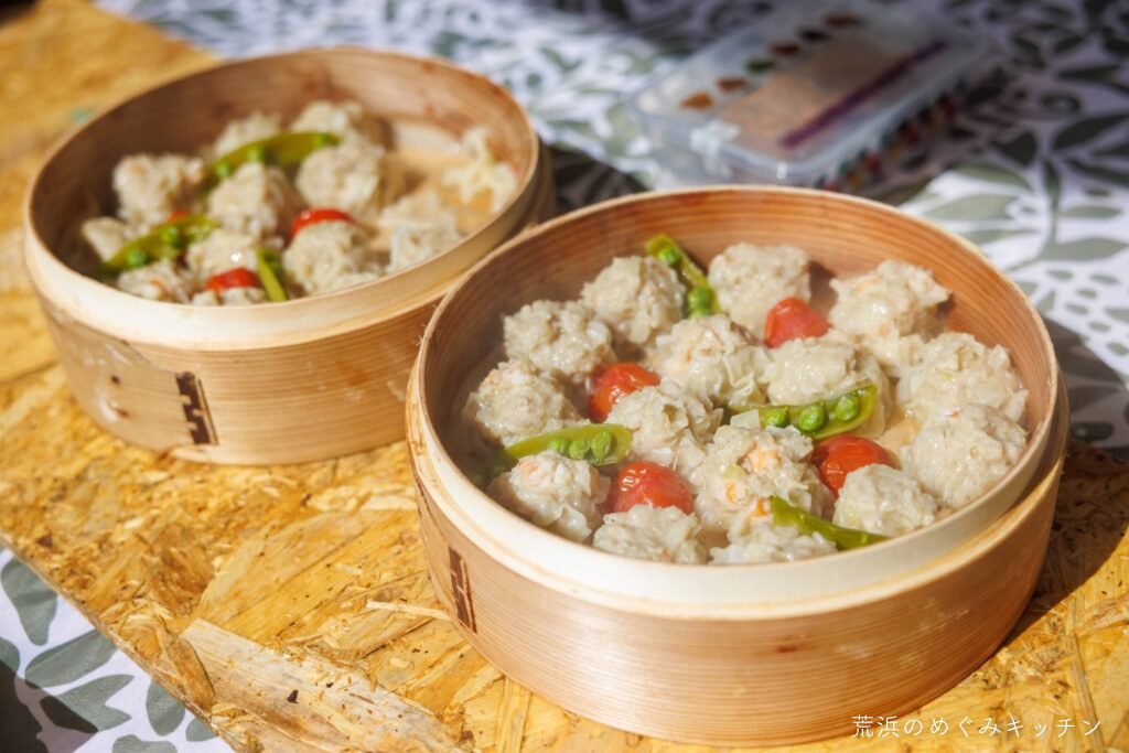 作業が終わり、お昼ごはん。今日もおいしい料理がいろいろ。特にエビシューマイは絶品…!